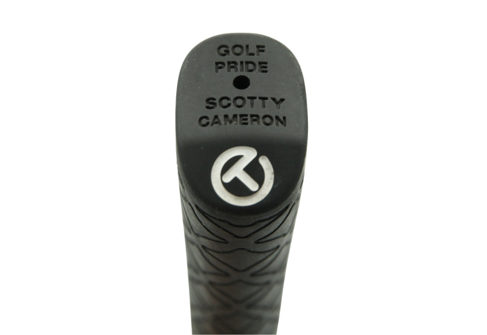The replacement grip for the Super Select Del Mar, Fastback 1.5, Squareback 2, GOLO 6 and GOLO 6.5 putters, Scotty's gray Pistolero Plus grip includes red Scotty Cameron lettering, white...