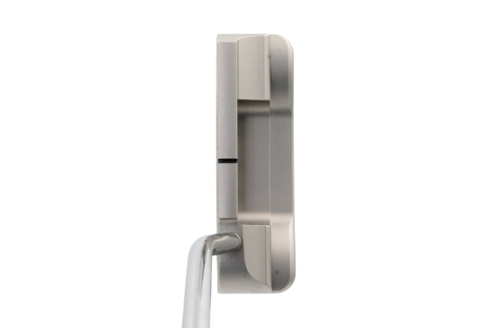 This putter has 1/2 toe hang and full offset. This Tour Scotty was finished off with a Circle T shaft is currently set to 35" and will come with the Industrial Circle T Headcover pictured and Studio Design Cameron Grip. We can bend this, no additional. Please let us know if you have any questions. Furthermore if you would like to swap out the Circle T weights for lighter or heavier ones (no charge) or would like to purchase Circle T weights we have 5-40g weights available as well. This putter does not have a COA but as always we guarantee every Scotty we sell will get an A COA.