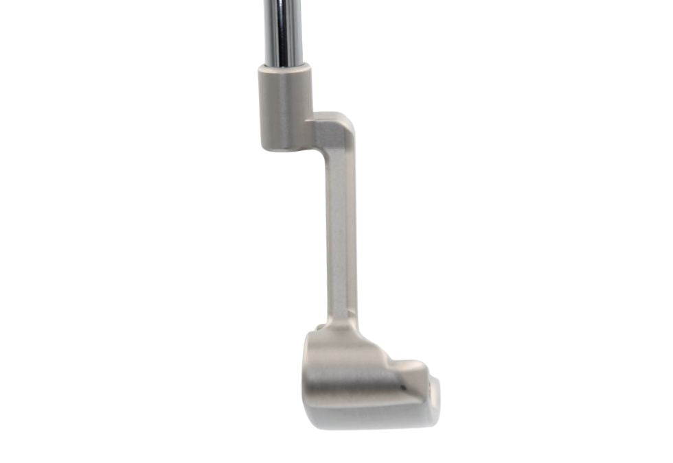 This putter has 3/4 toe hang and full offset. This Tour Scotty was finished off with a Circle T shaft with dual shaft bands. It is currently set to 34" and will come with the USA Industrial Circle T headcover and Circle T Pistolero Plus Black with Grey Grip. We can bend this, no additional. Please let us know if you have any questions.