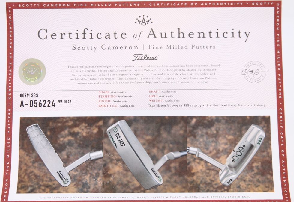 This Scotty Cameron 009M is made entirely of Studio Stainless Steel. It features a topline, and some rare stamping. This piece is used, 8 out of 10, only due to some wear on the sole.